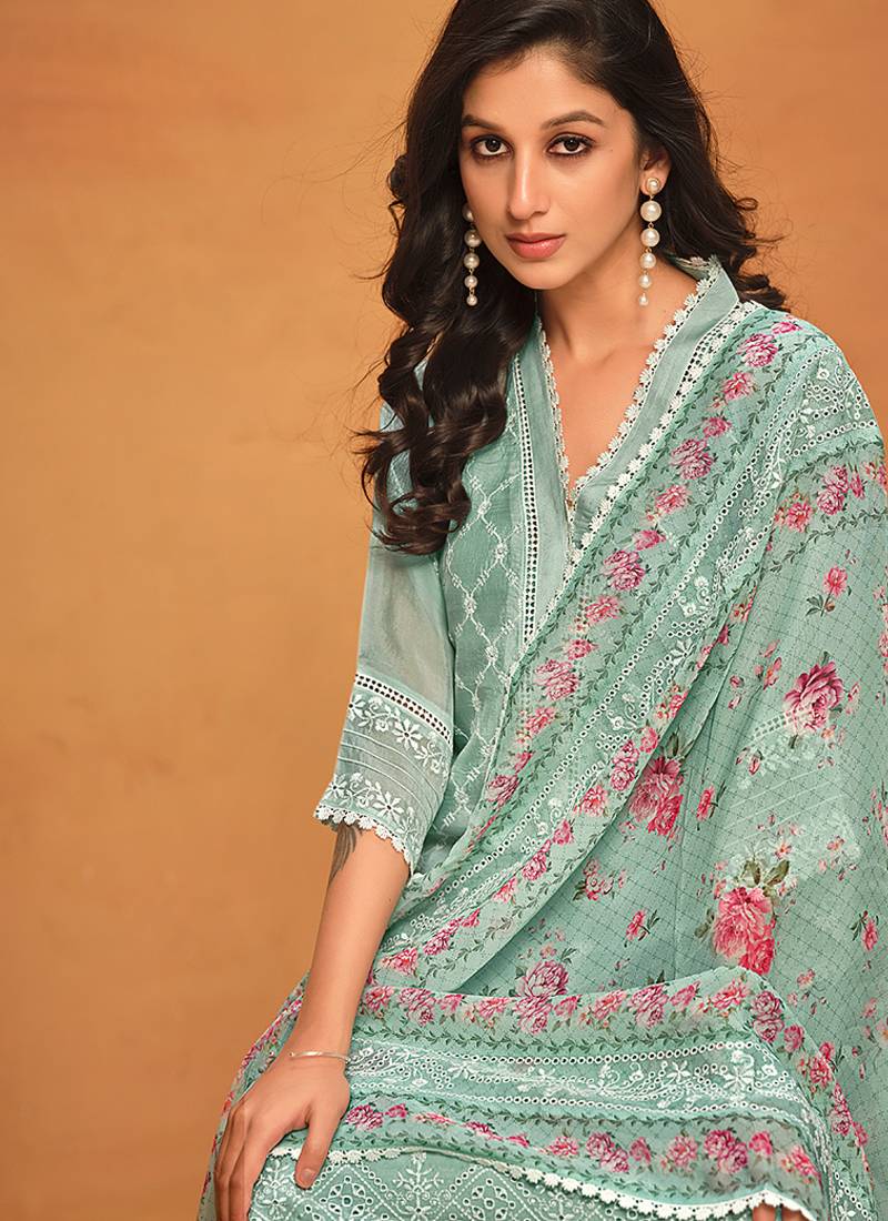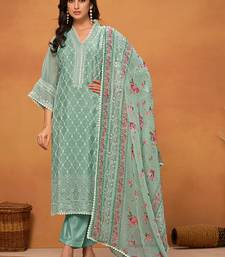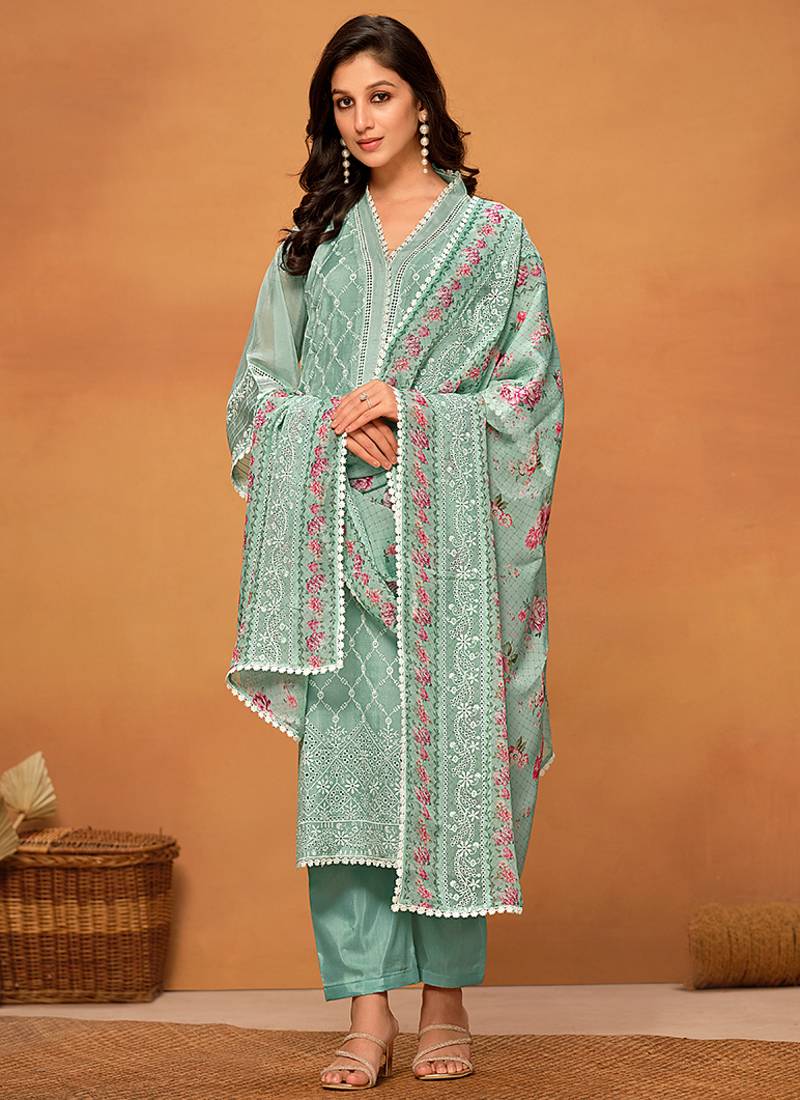 | Product Name | Sea Green Chikankari Viscose Organza Straight Cut Salwar Kameez For Women | |