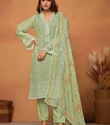 Sea green chikankari viscose organza straight cut salwar kameez for women semi stitched