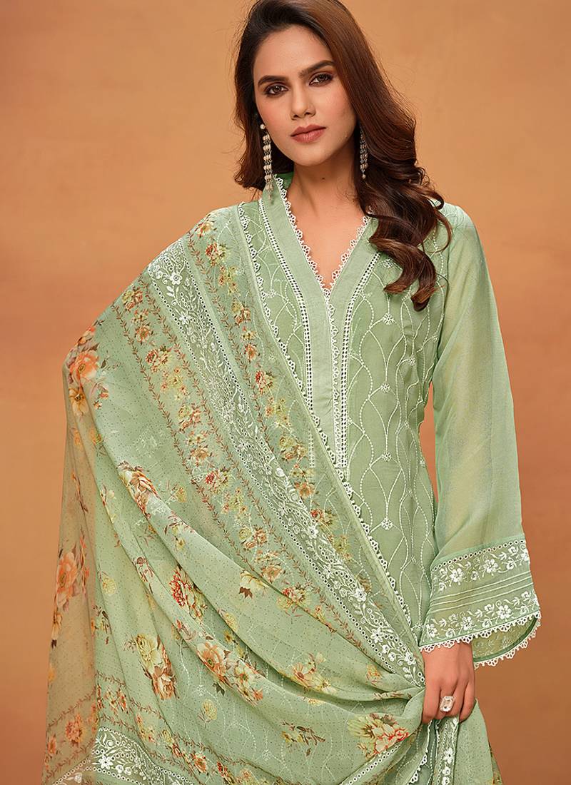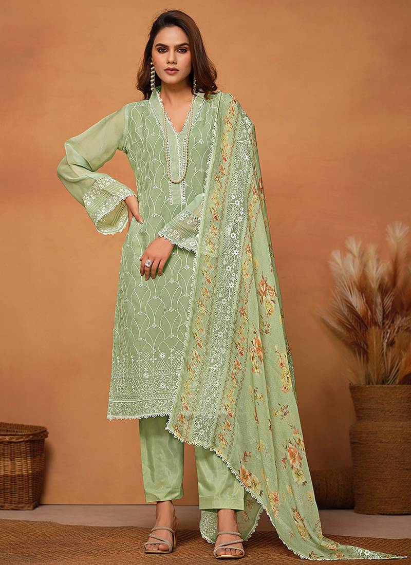| Product Name | Sea Green Chikankari Viscose Organza Straight Cut Salwar Kameez For Women | |