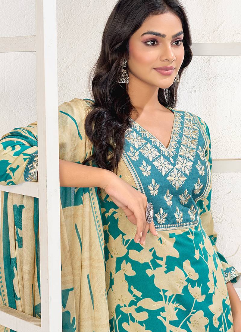 | Product Name | Sea Green Digital Print With Embroidery Riyon Salwar Kameez With Two Pocket | |