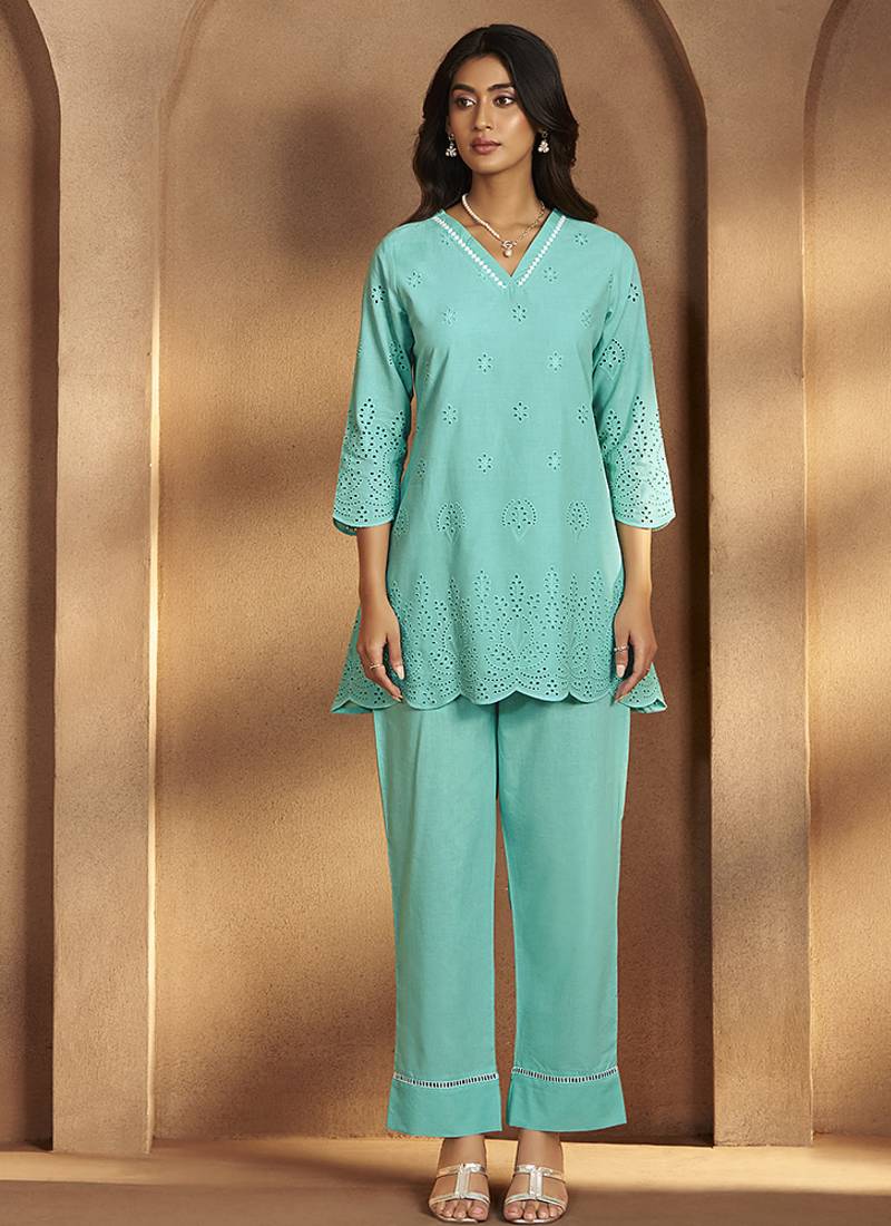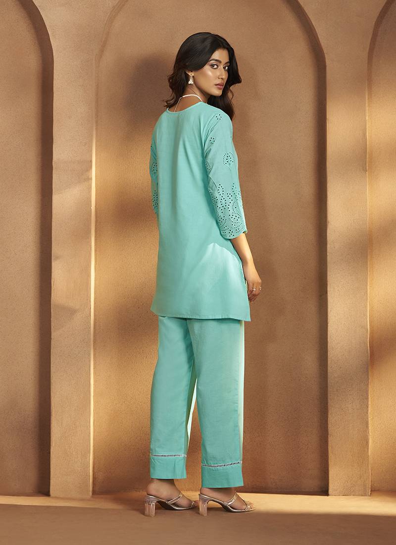 | Product Name | Sky Blue Schiffli Pure Cotton Co Ord Set | |