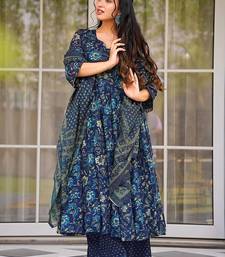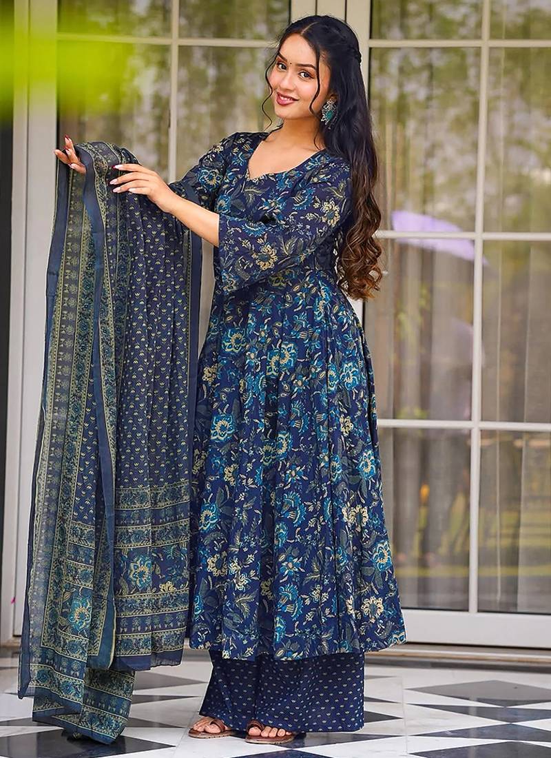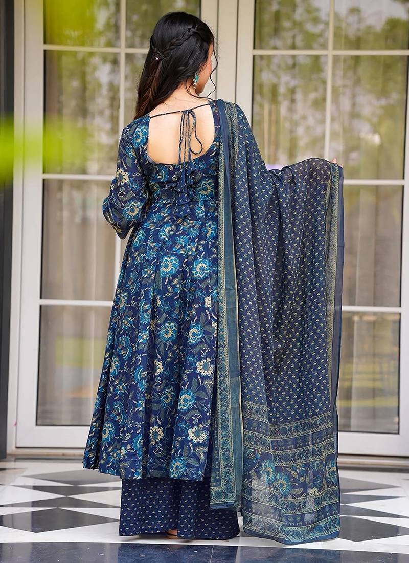 | Product Name | Teal Blue Heavy Digital Printed Maslin Anarkali Palazzo Style | |