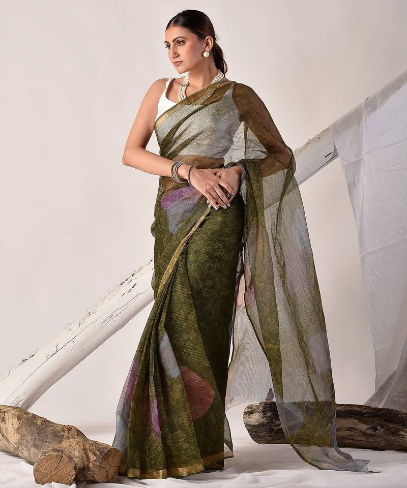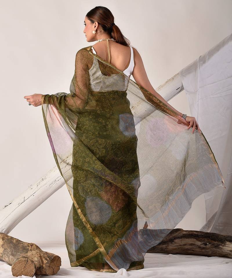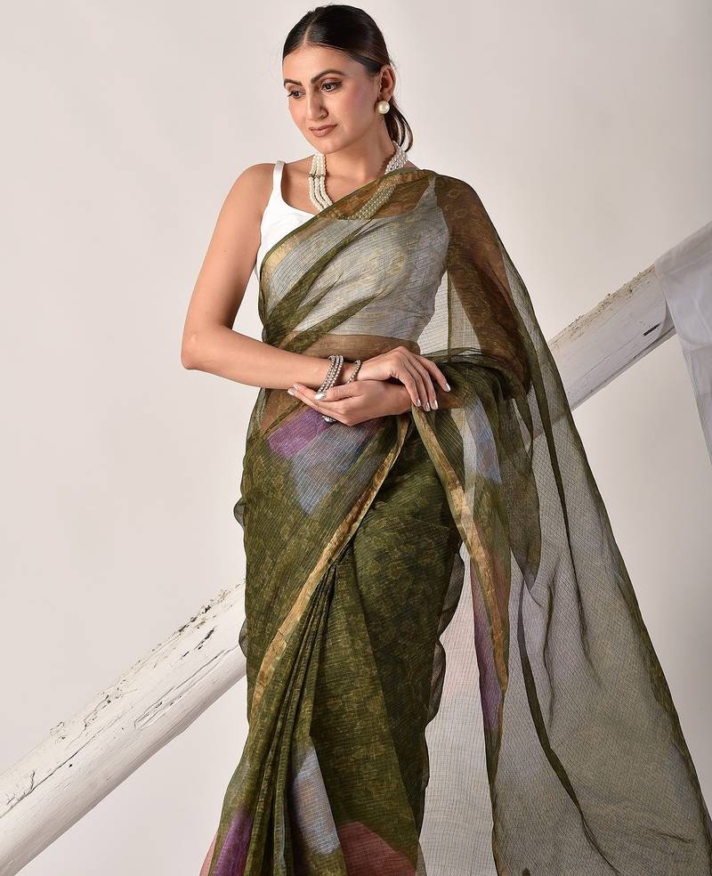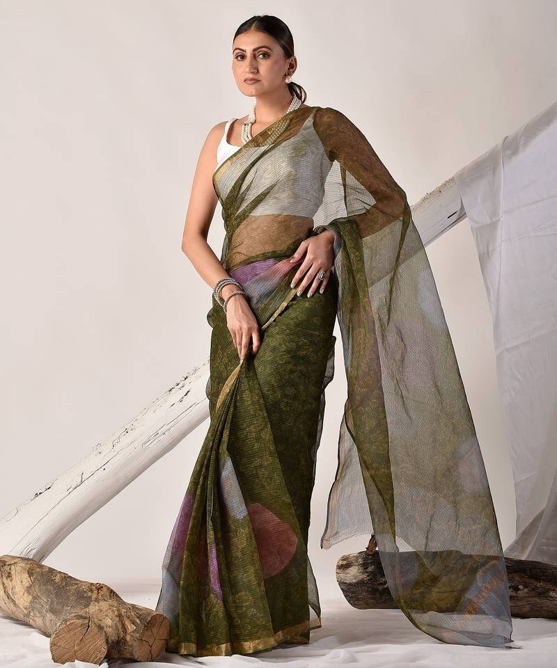 | Product Name | Forest Green Block Printed Pure Kota Doria Saree | |