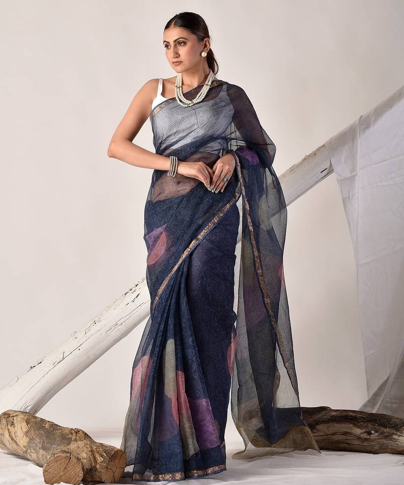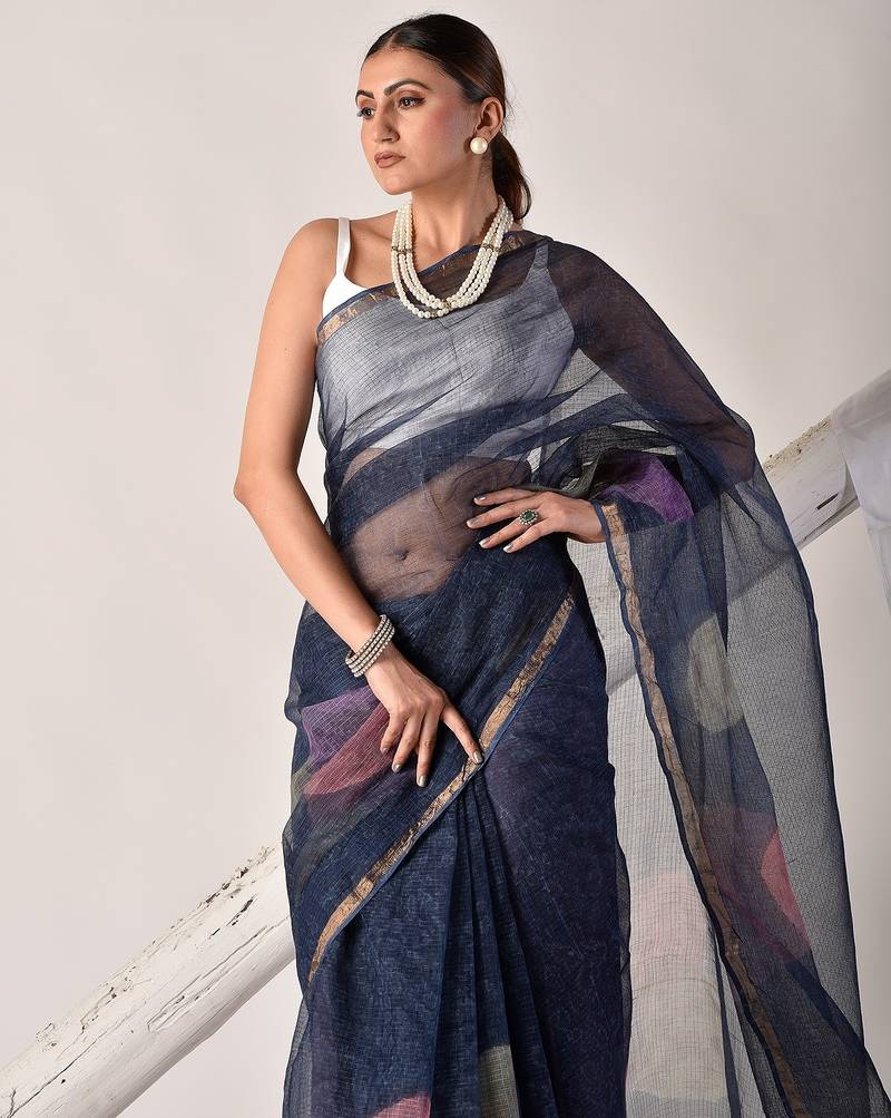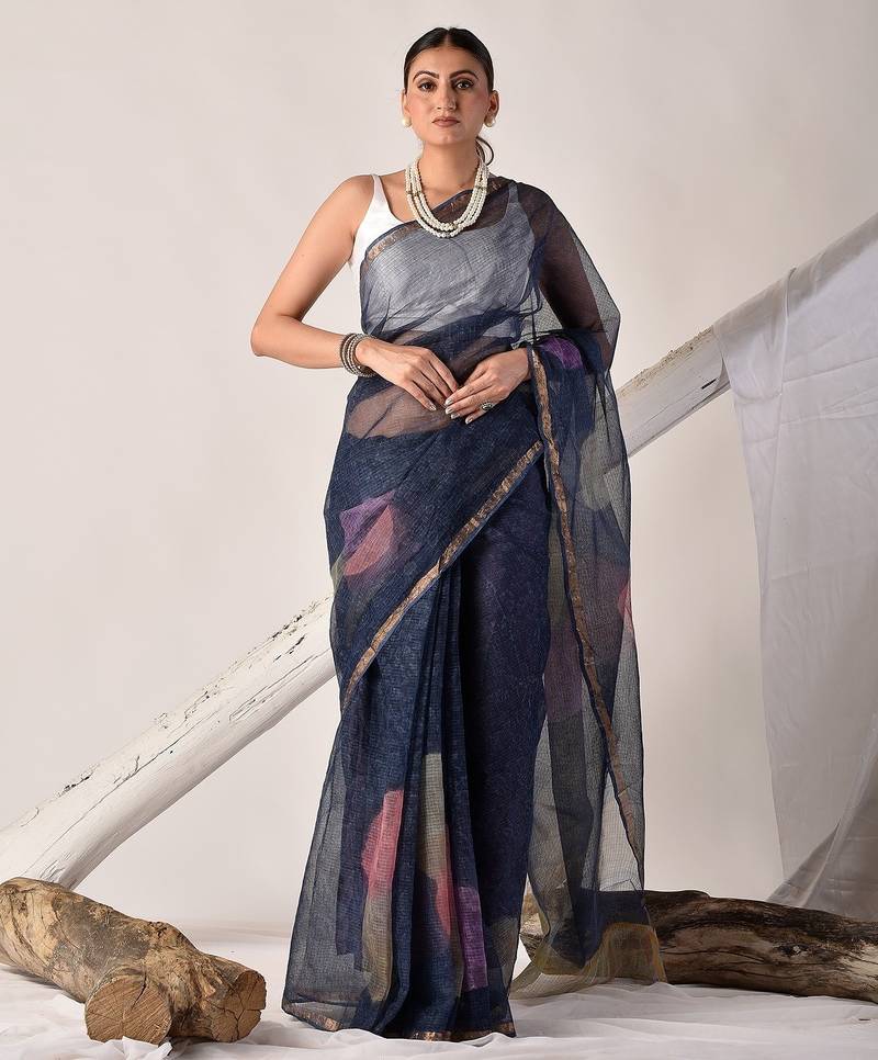 | Product Name | Indigo Blue Block Printed Pure Kota Doria Saree | |