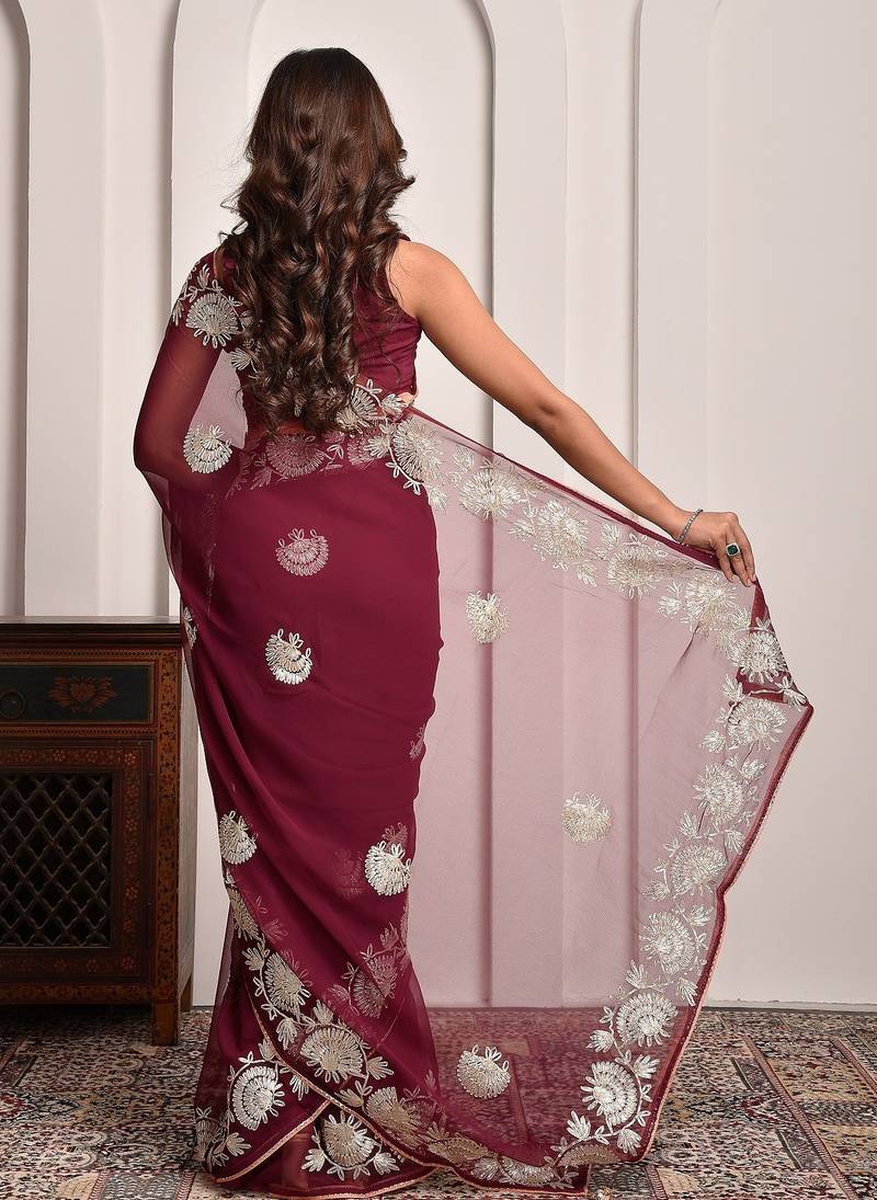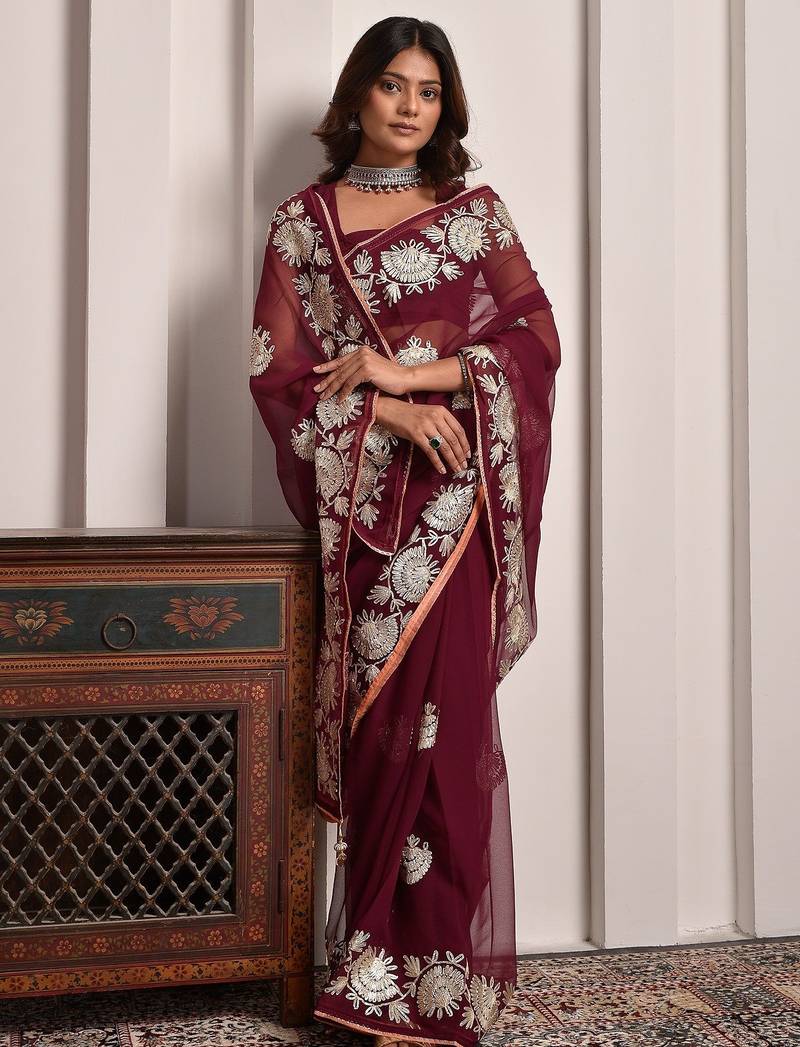 | Product Name | Luxe Maroon Gota Accented Georgette Saree With Unstitched Blouse Piece | |