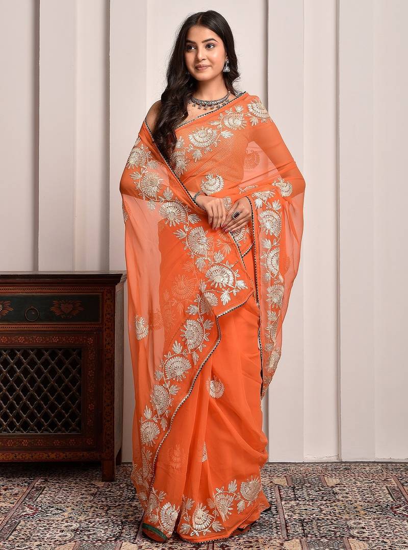 | Product Name | Orange Glow Gota Georgette Statement Saree With Unstitched Blouse Piece | |