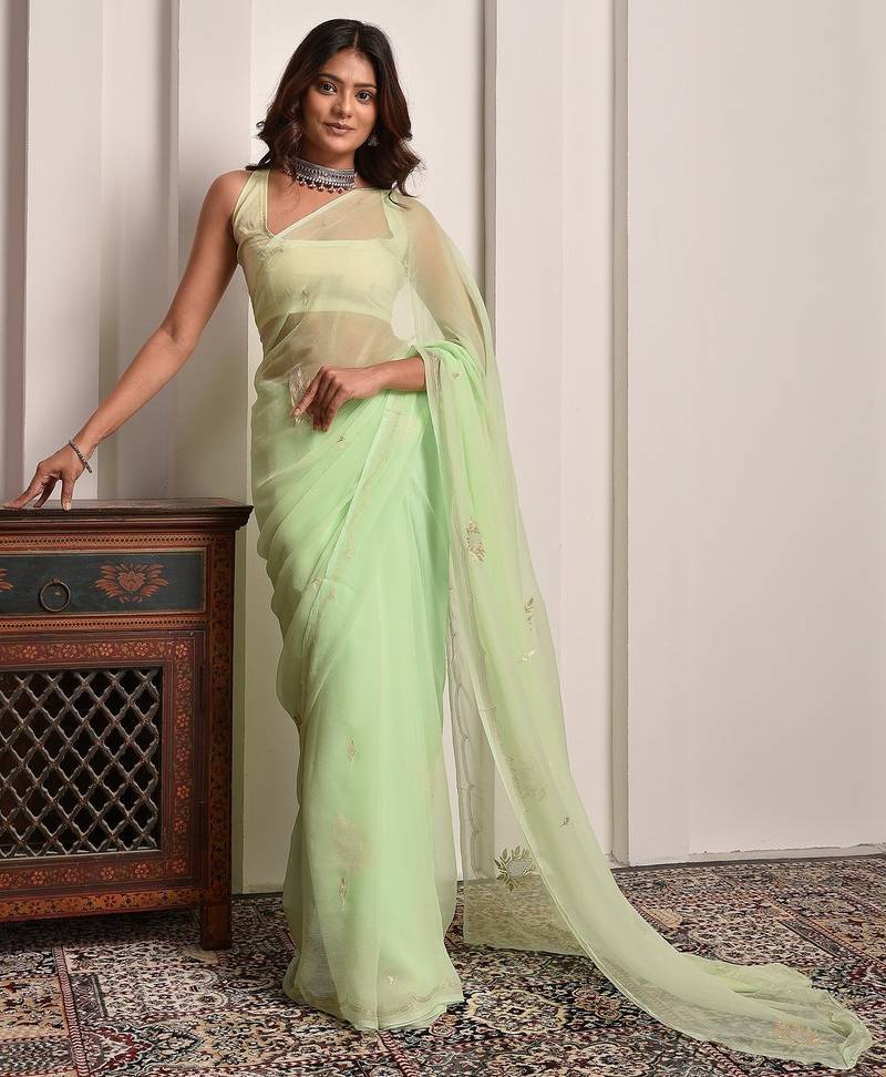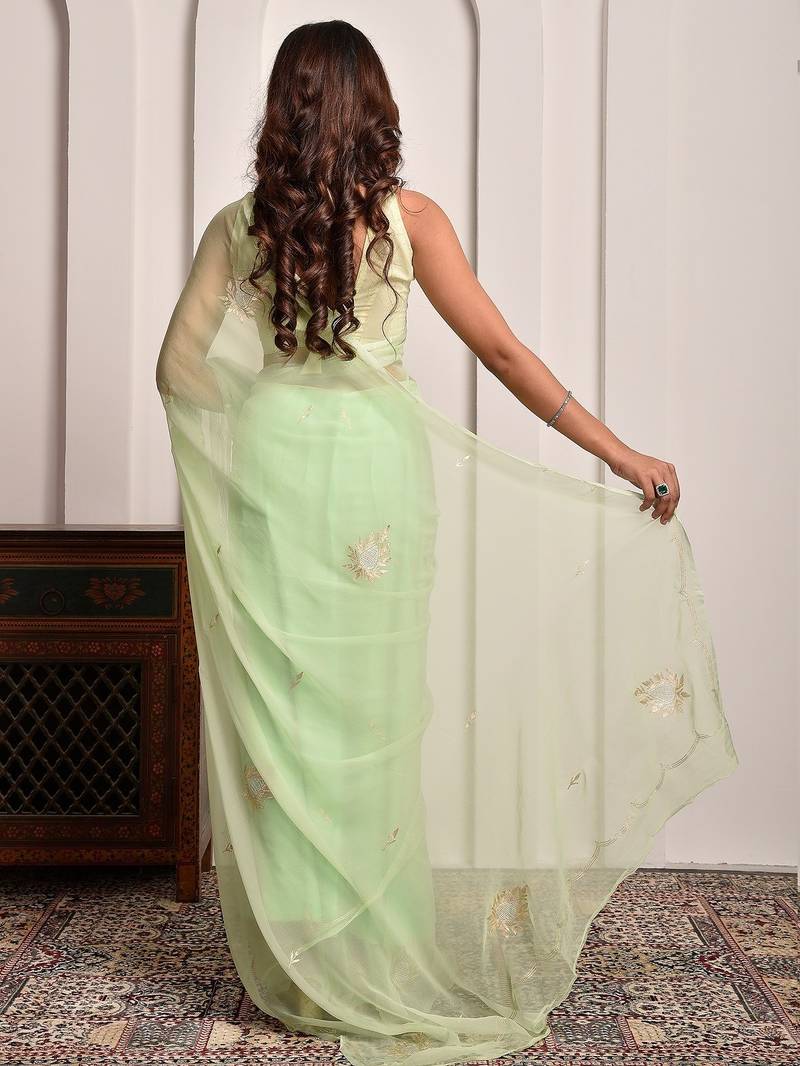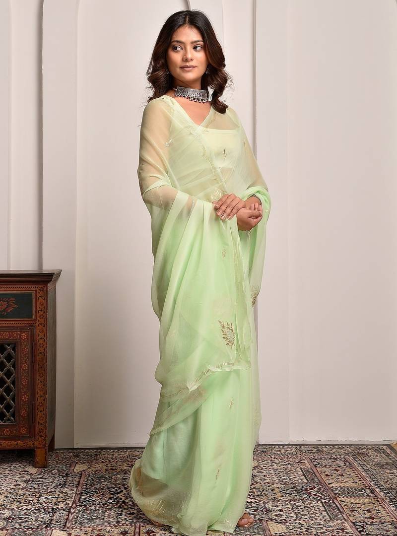 | Product Name | Pista Green Hand Embellished Chiffon Saree | |