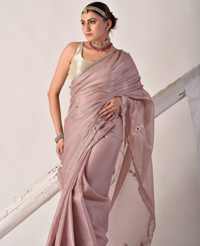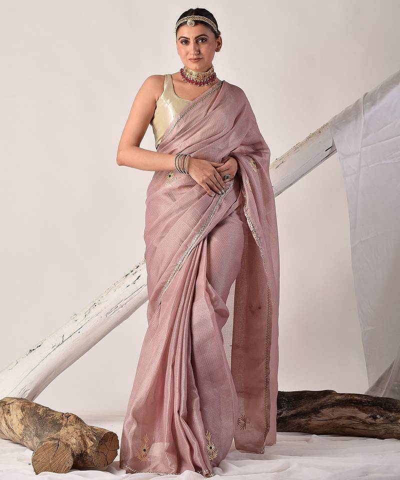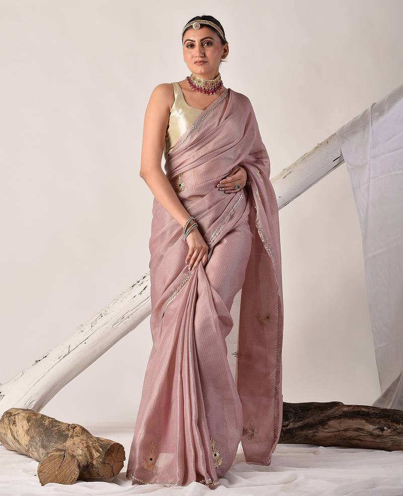 | Product Description | Elevate Your Ethnic Style With This Rose Gold Kota Doria Saree, Hand Embellished With Exquisite Gota Patti Work. Paired With A Matching Blouse Piece, It’s A Perfect Blend Of Tradition And Elegance. |