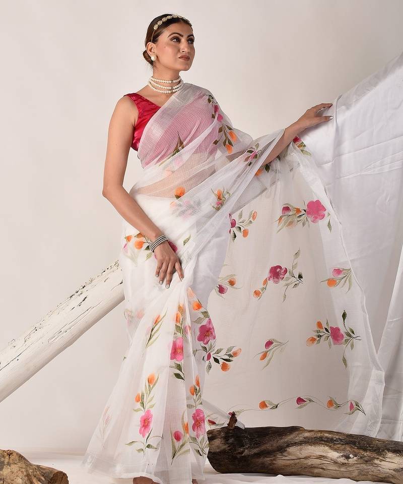 | Product Name | White Hand Painted Pure Kota Doria Saree | |