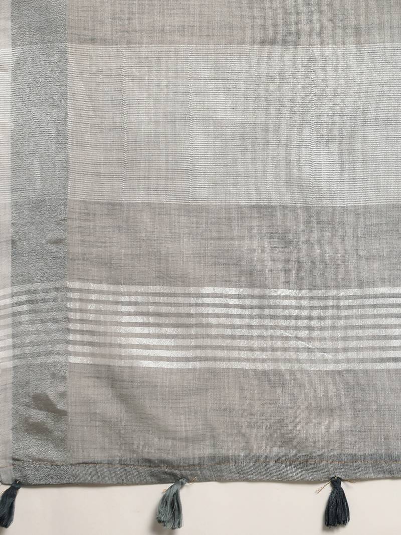 | Product Name | Elegant Grey Woven Linen Saree With Contrast Zari Border & Tassels Soft & Breathable Party Wear | |
