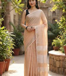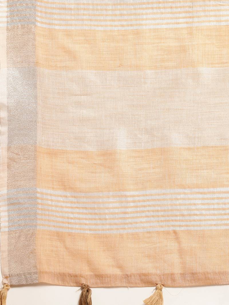 | Product Name | Elegant Tan Woven Linen Saree With Contrast Zari Border & Tassels Soft & Breathable Party Wear | |
