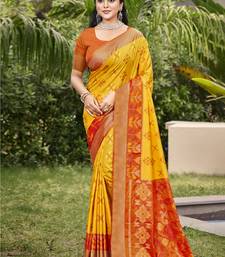 | Product Name | Exquisite Yellow & Red Pochampalli Soft Silk Blend Saree With Grand Ikat Woven Pallu | |