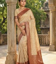 Ivory and maroon banarasi silk saree with golden zari – regal elegance for timeless celebrations