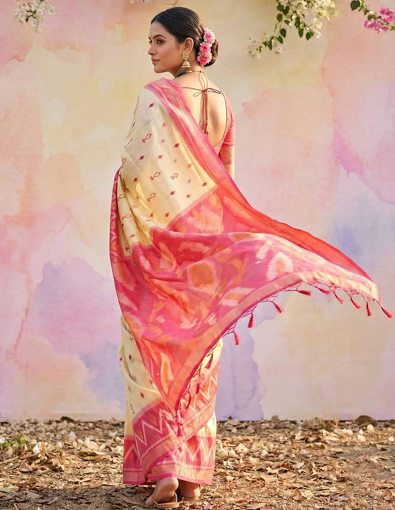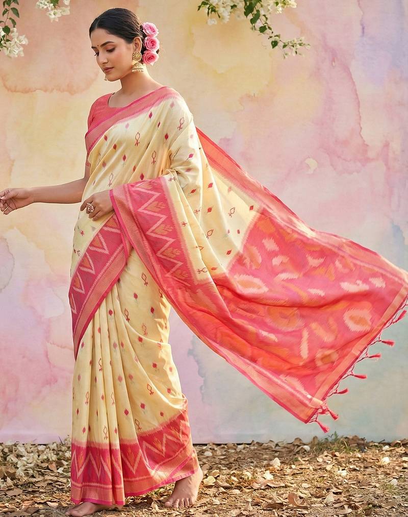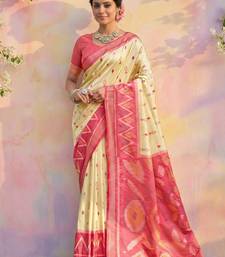 Sutriti cream pochampalli silk saree | traditional wedding & festive wear saree