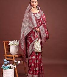Sutriti deep burgundy maroon soft silk saree for wedding wear