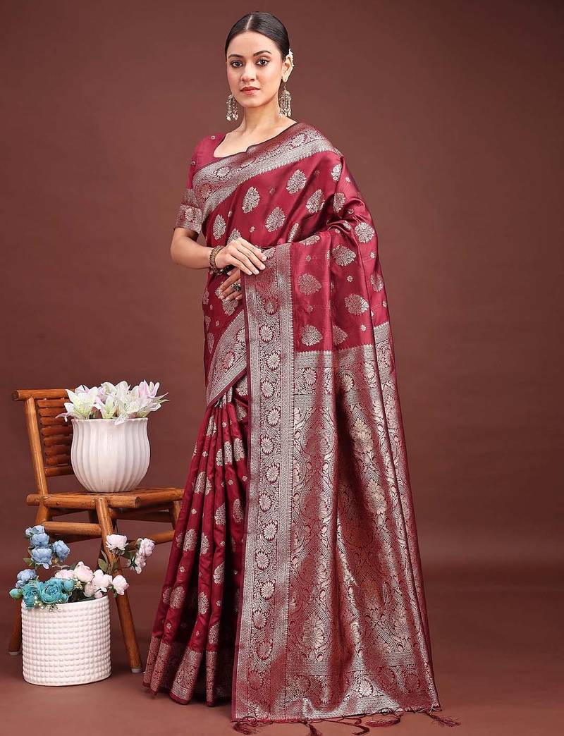| • | Saree | : | Color- Maroon / Fabric- Banarasi Silk |