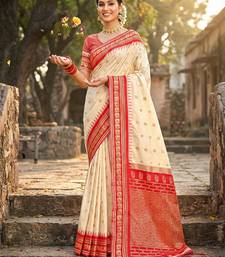 Sutriti graceful cream banarasi silk saree with golden zari woven border & floral jaal – wedding & festive wear
