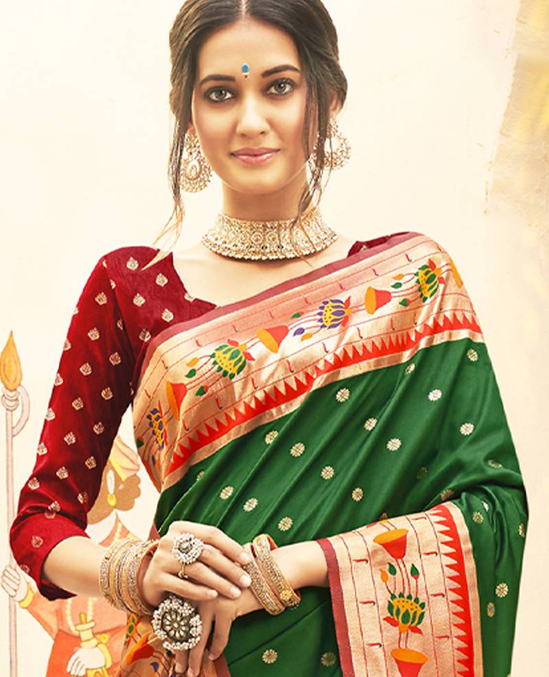 Sutriti majestic dark green paithani silk saree with royal floral zari pallu | festive & bridal edition