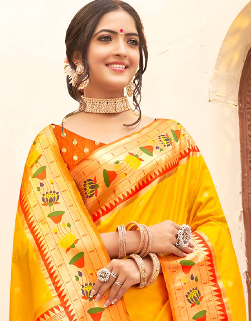 Sutriti majestic yellow paithani silk saree with royal floral zari pallu | festive & bridal edition