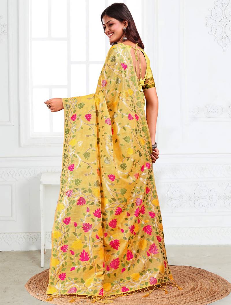 | • | Saree | : | Color- Yellow / Fabric- Linen |