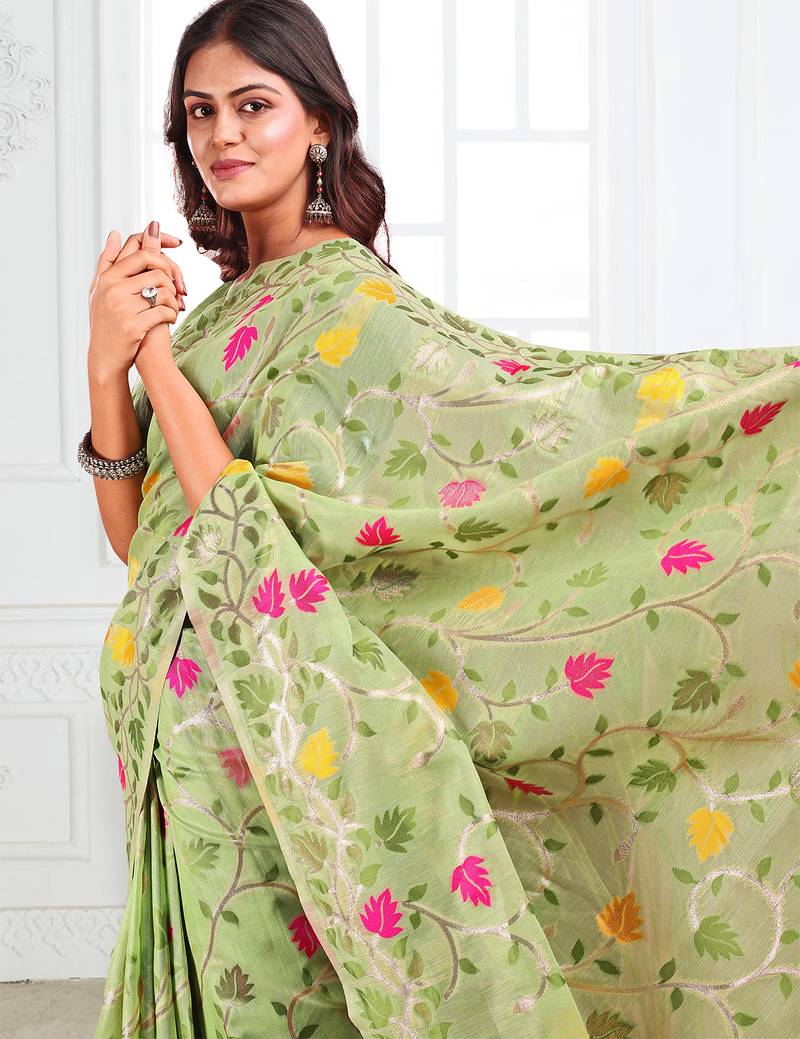 | • | Saree | : | Color- Light Green / Fabric- Linen |