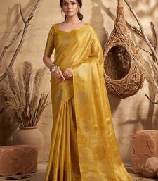 Sutriti mustard tissue silk saree for women wedding festive party ethnic wear