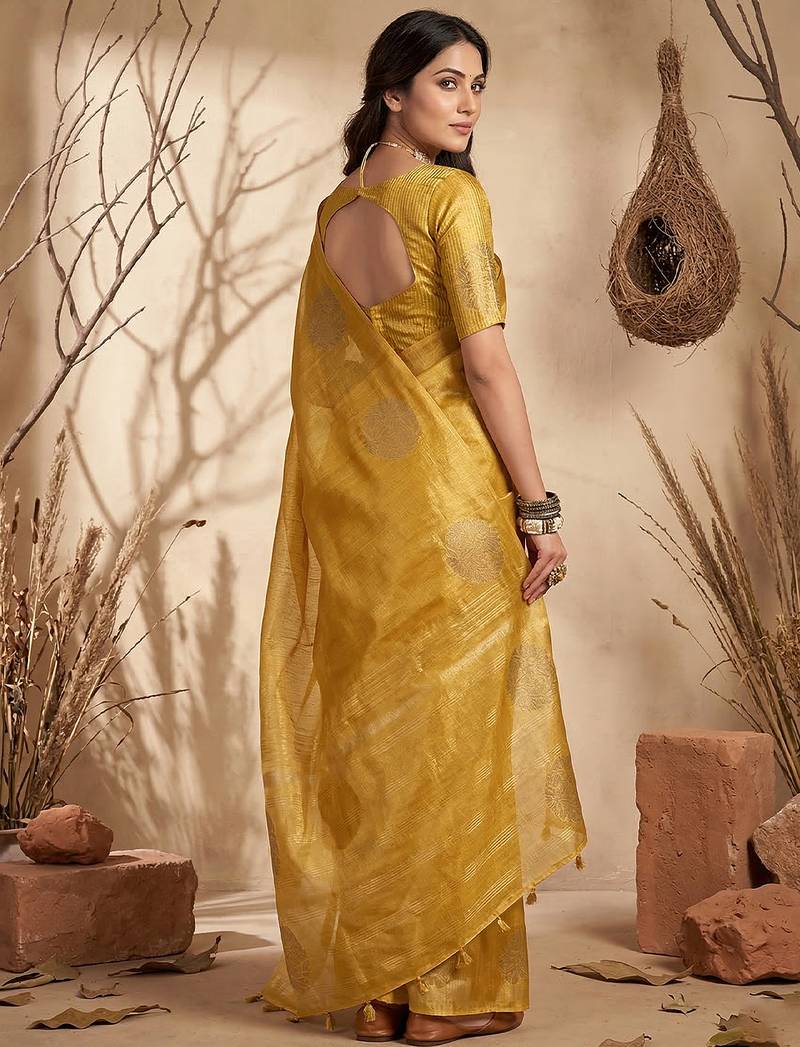 | Product Name | Sutriti Mustard Tissue Silk Saree For Women Wedding Festive Party Ethnic Wear | |