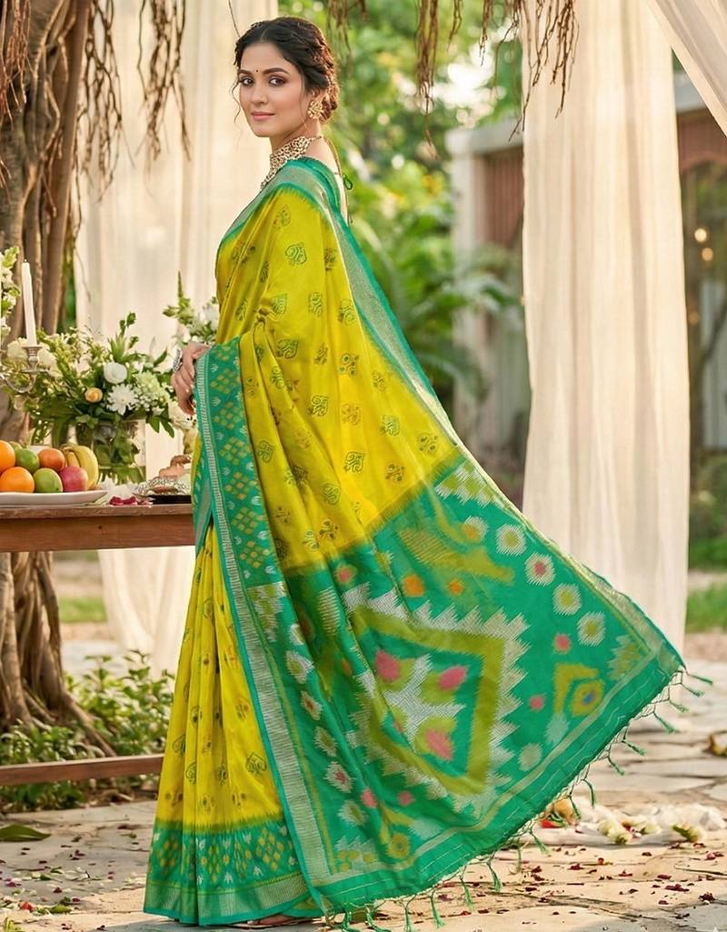 | Product Name | Sutriti Mustard Yellow Pochampalli Silk Saree | Elegant Traditional Wedding & Festive Wear Saree | |