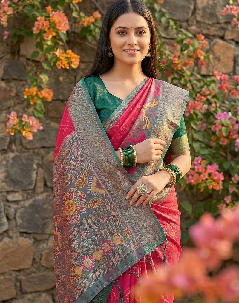 Sutriti pink pochampalli silk saree for women | wedding & festive wear saree