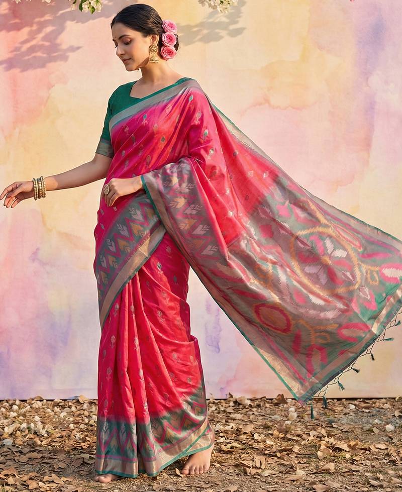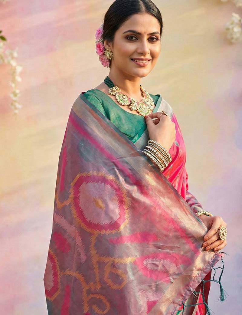 Sutriti pink pochampalli silk saree | traditional wedding & festive wear saree