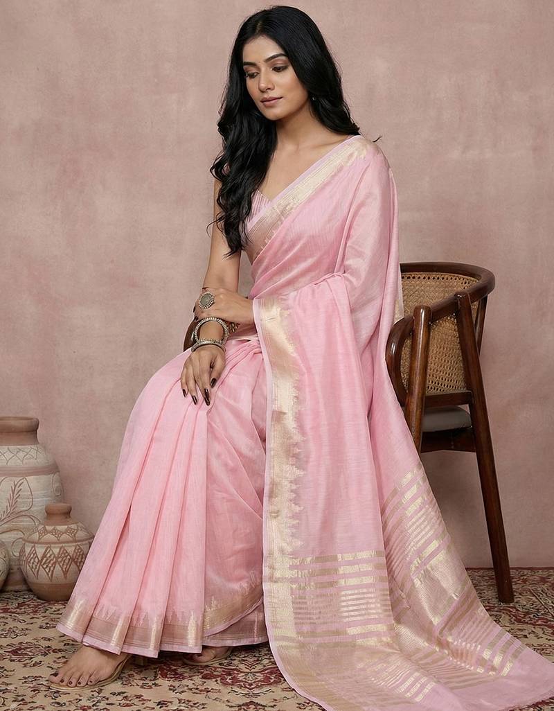 Product Name Sutriti Women's Pink Pure Linen Saree With Zari Border & Blouse Piece