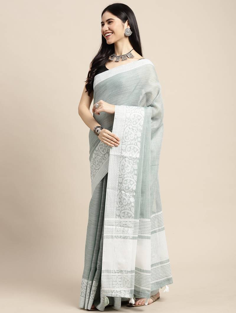 | • | Saree | : | Color- Sea Green / Fabric- Linen |
