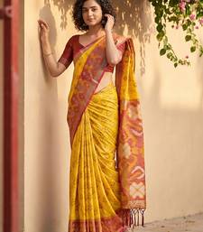 Sutriti yellow & maroon pochampalli soft silk saree with traditional ikat pallu sari