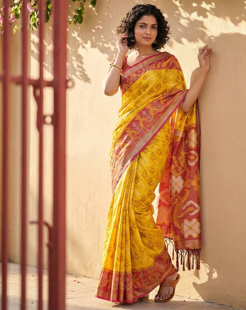 | • | Saree | : | Color- Yellow / Fabric- Pochampally |