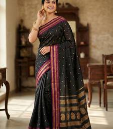 The midnight luxurious black soft silk saree with magenta & gold zari border