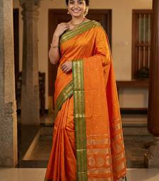 The sunset glow: vibrant orange soft silk saree with contrast green zari border