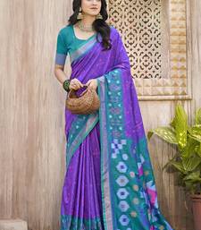 Violet pochampalli soft silk blend saree with traditional ikat woven pallu