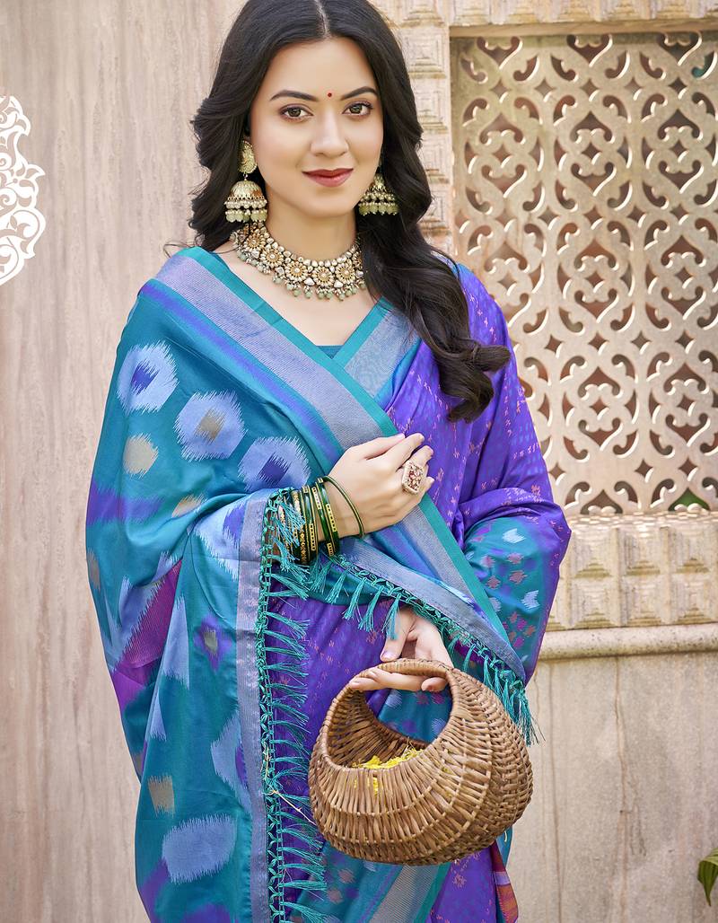 Product Name Violet Pochampalli Soft Silk Blend Saree With Traditional Ikat Woven Pallu