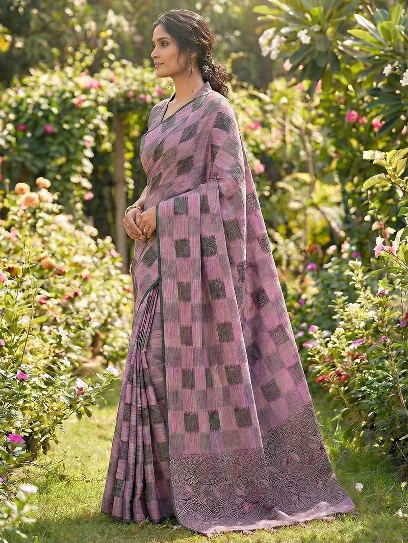 | Product Name | Women Mauve & Black Checkered Linen Blend Saree With Floral Pallu | |