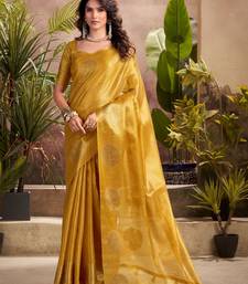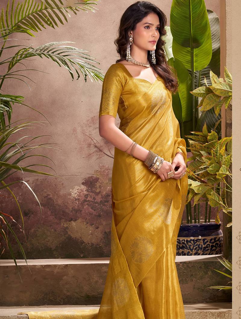 Mustard yellow woven tissue silk blend saree with mandala motifs