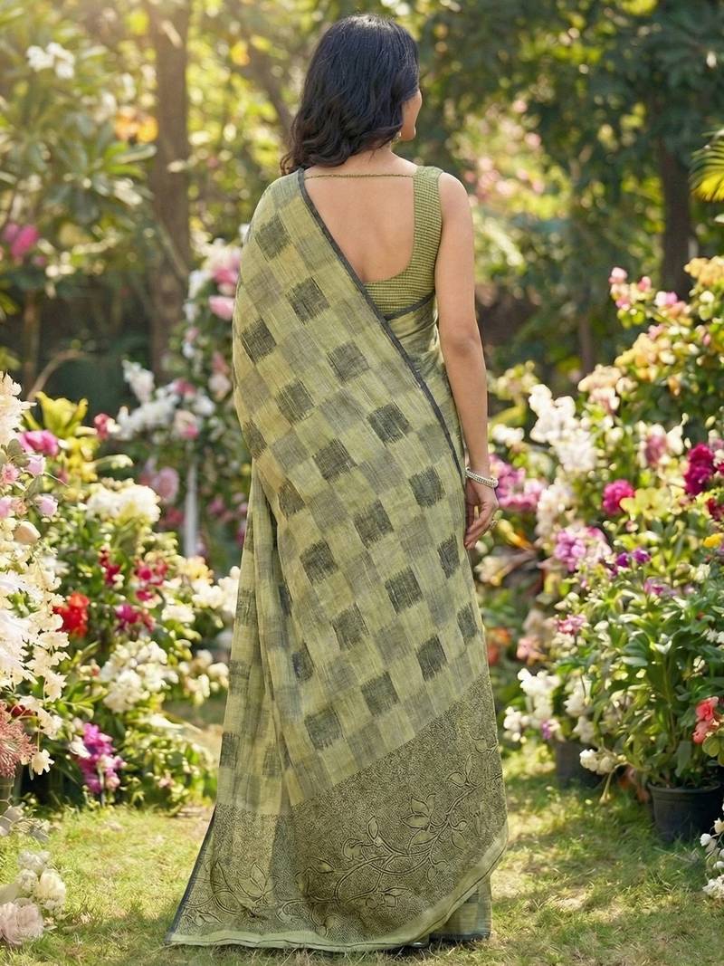 | Product Name | Women Olive Green & Black Checkered Linen Blend Saree With Floral Pallu | |