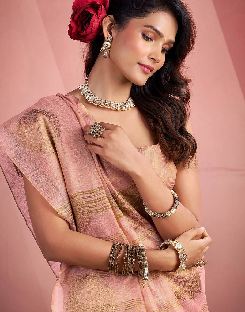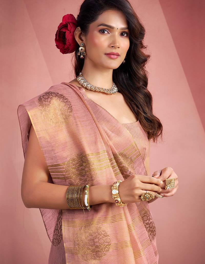 Peach & gold woven tissue silk blend saree with mandala motifs