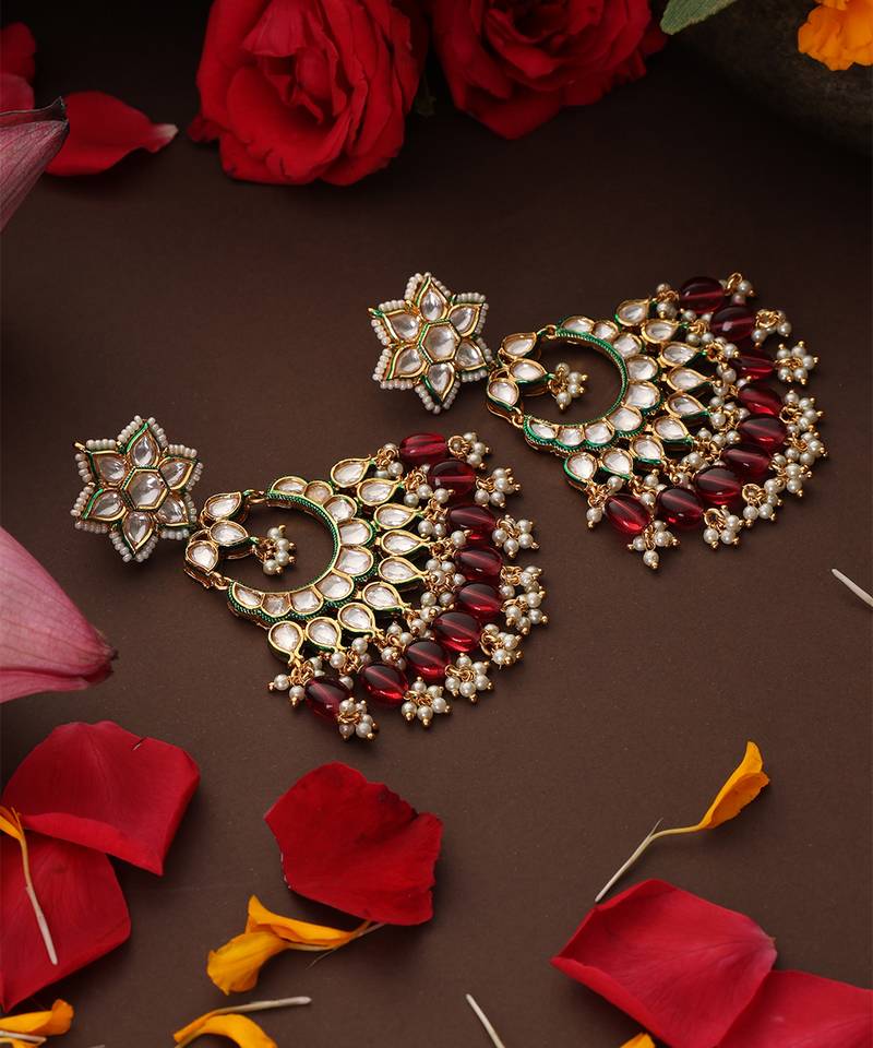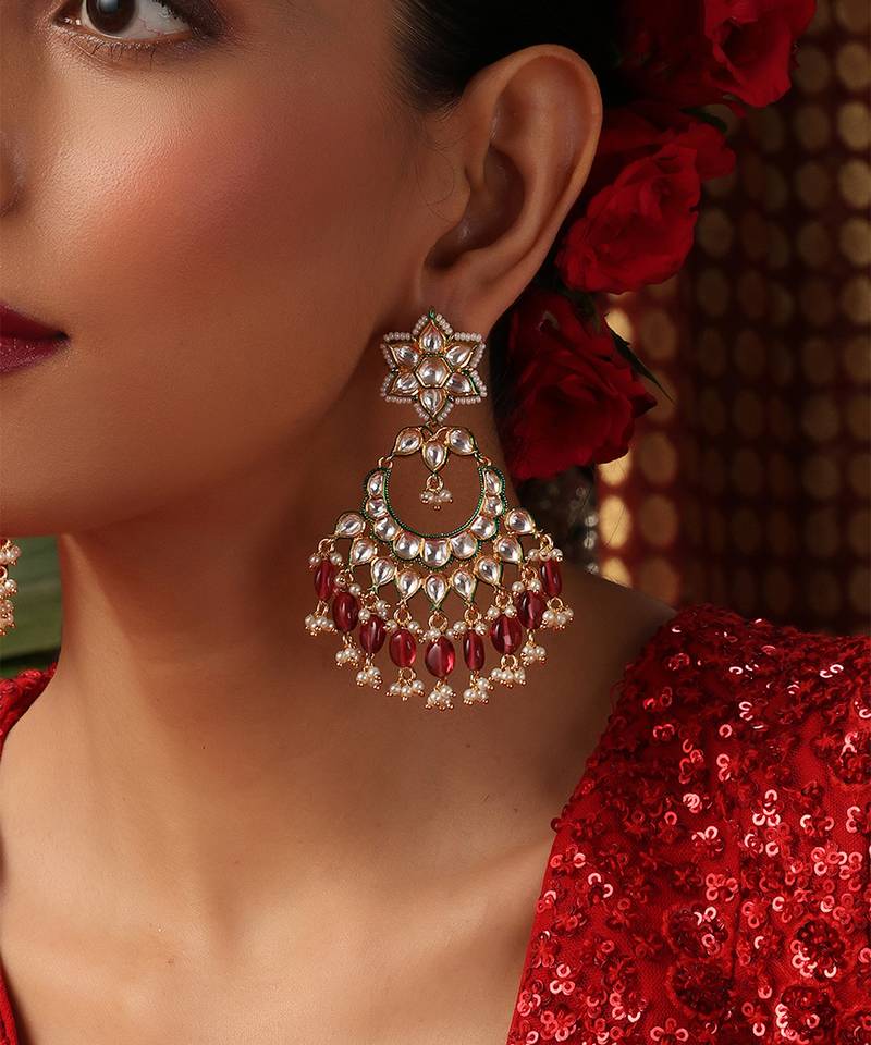 | Product Name | Gold Plated Kundan Red Stones Chandbali Earrings | |