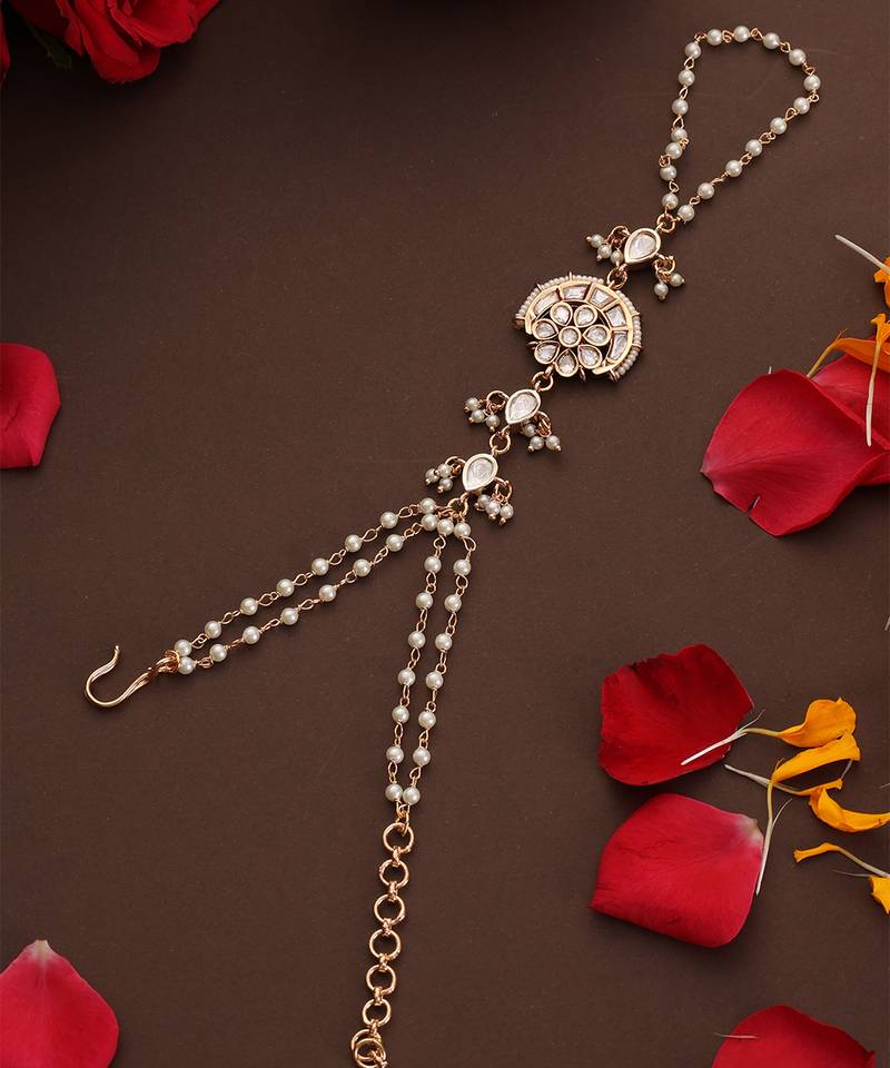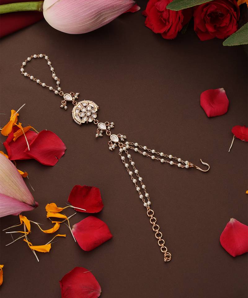 | Product Description | This Rose Gold Plated Kundan Hathpool Showcases Exquisite Craftsmanship And Timeless Elegance. Adorned With Finely Set Kundan Stones, It Adds A Regal And Graceful Touch To Traditional Attire. Perfect For Weddings And Festive Occasions, It Elevates Ethnic Ensembles With Sophisticated Charm And Statement Appeal.