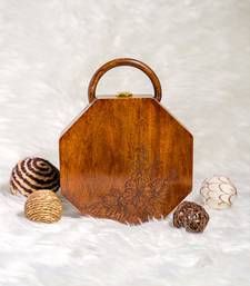 Product Description | This Hexagon Bag Is Ideal For All Occasions And Is Crafted From Solid Sheesham Wood. The Top Surface Is Beautifully Engraved With Floral Motifs And Features A Sturdy Wooden Handle. A Magnetic Closure Keeps The Wooden Bag Securely Closed, While A Brass Sling Chain Is Included For Easy Carrying. The Bag Also Has A Printed Crape Inner Lining For Added Elegance. |