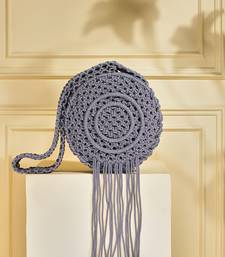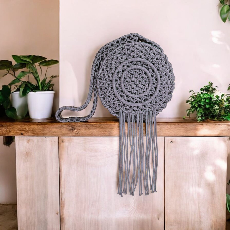 Product Name Round Macrame Fringe Boho Bag Stormy Grey
