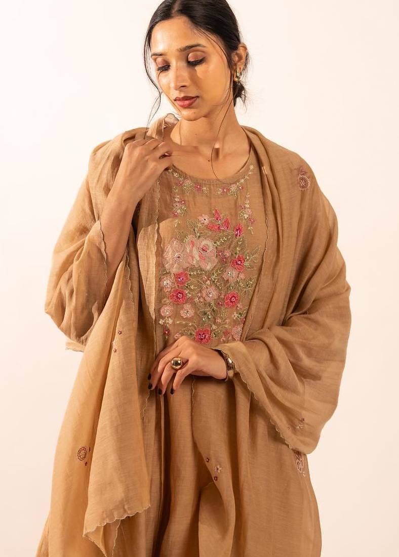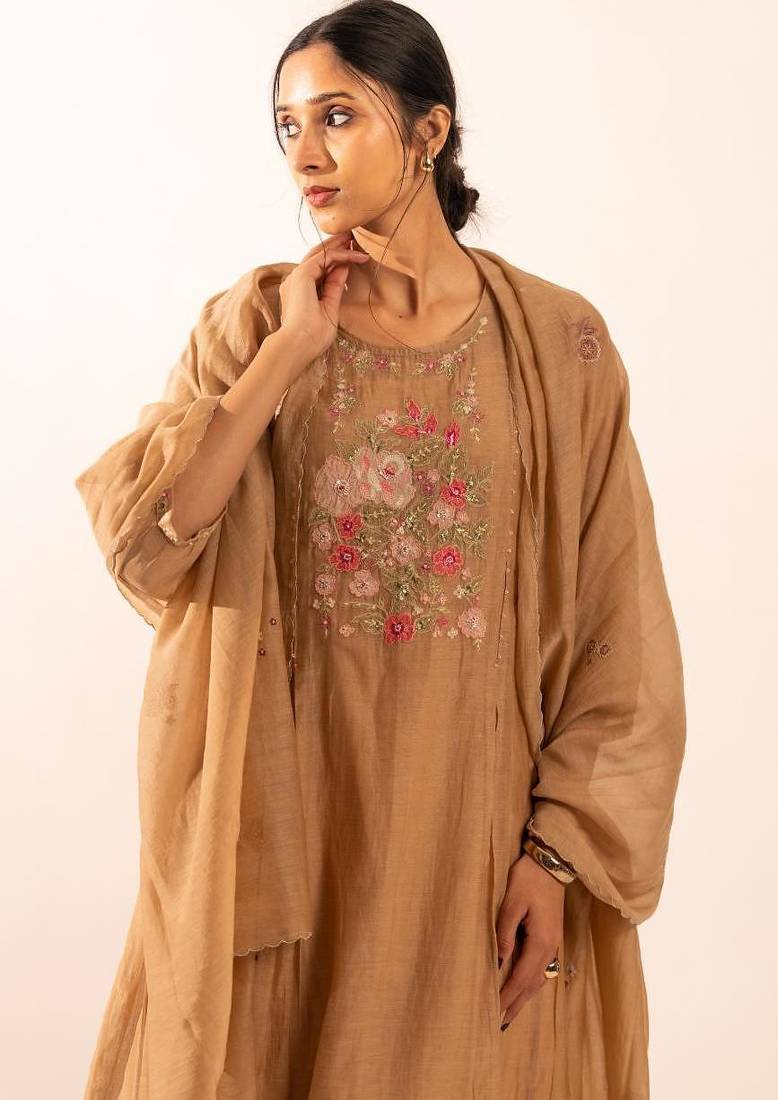| Product Name | Chiku Floral Applique Chanderi Suit Set With Duppata | |