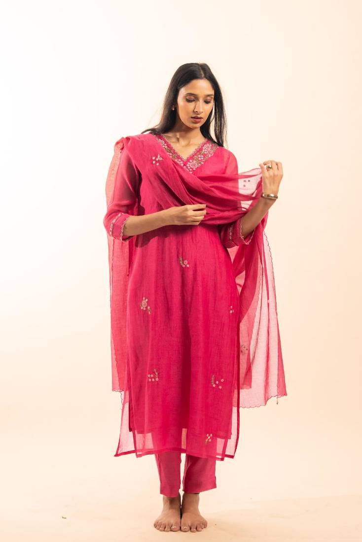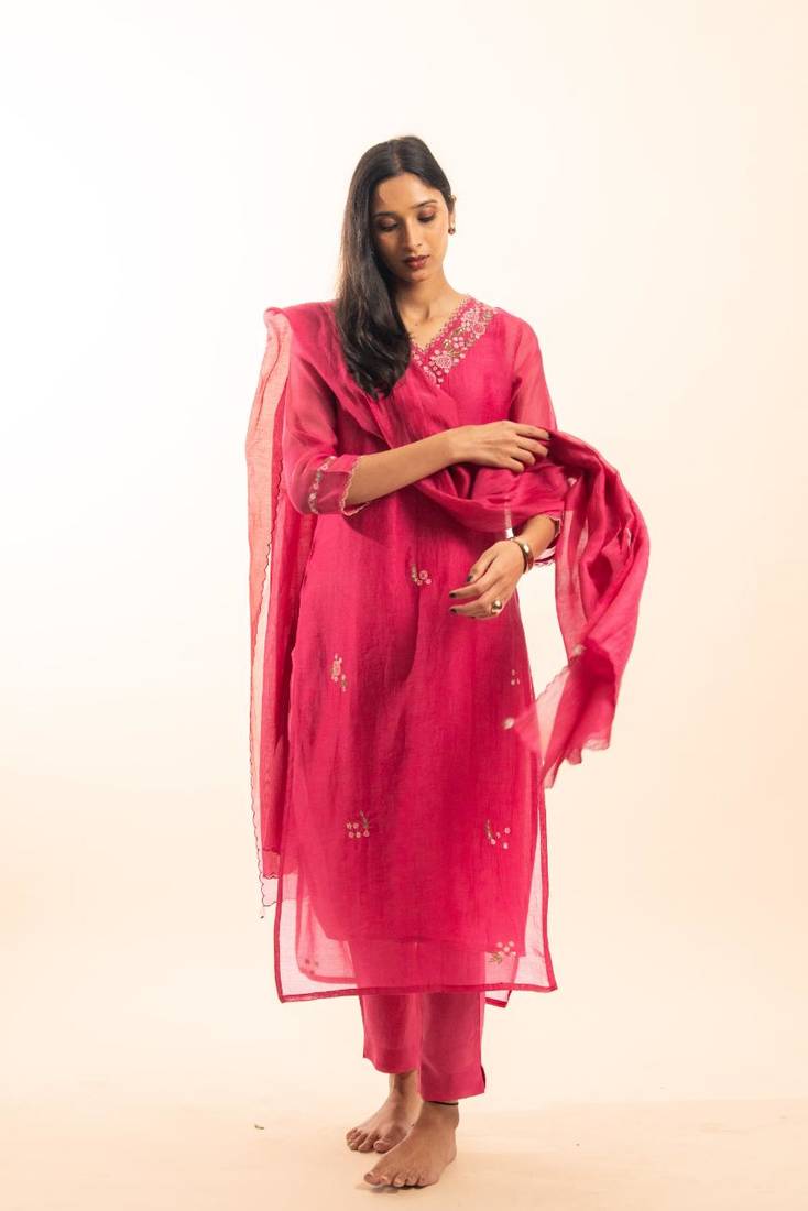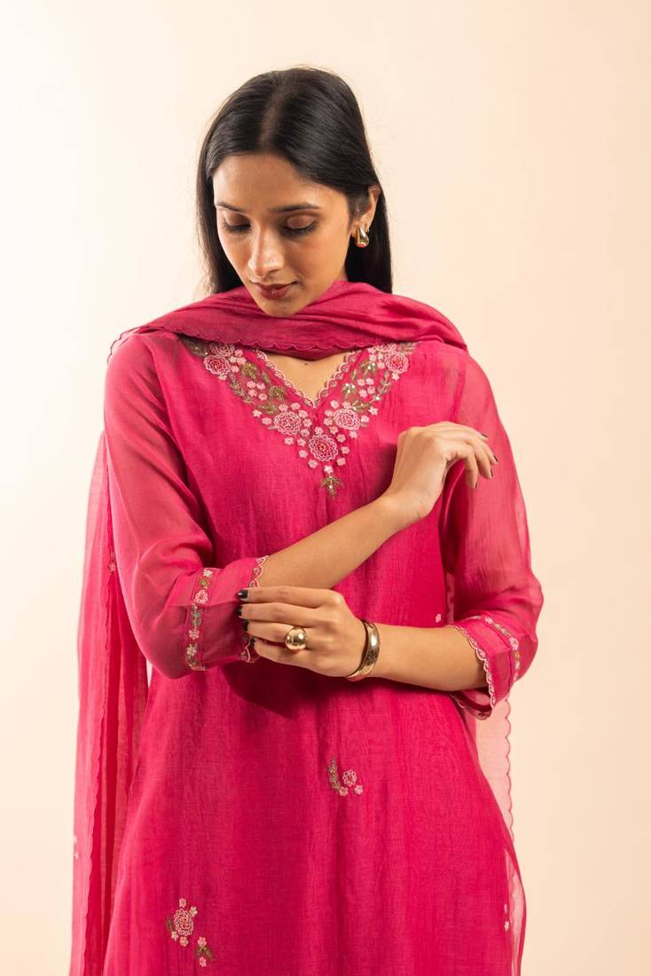 | Product Name | Rani Pink Rangoon Bail Kurta Set With Duppata | |
