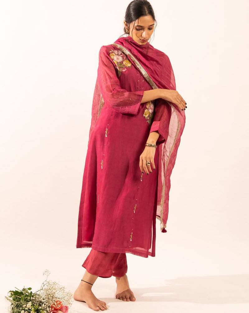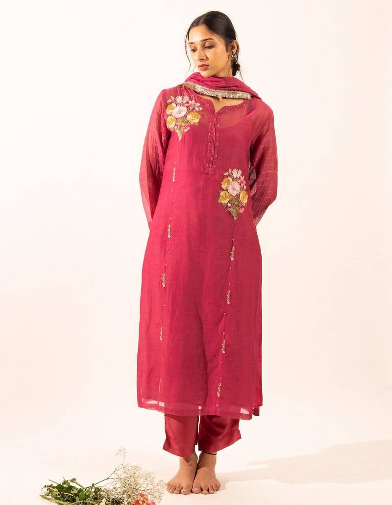 | Product Name | Rani Pink Twin Bouquet Suit Set With Duppata | |