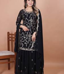 Black color faux georgette embroidery work wedding wear plazo set stitched